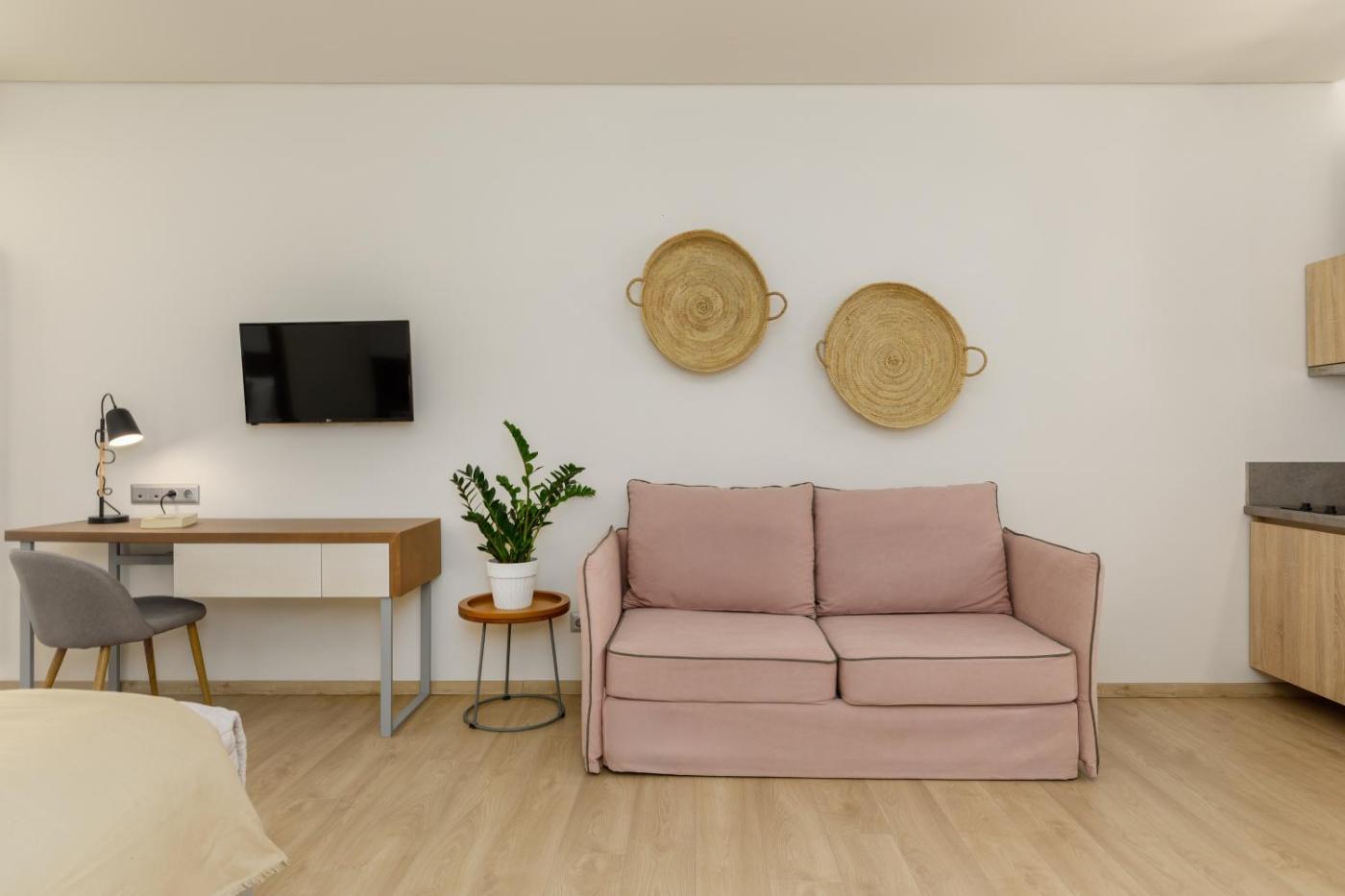 Deluxe Studio. Providing free toiletries, this studio includes a private bathroom with a shower and a hairdryer. The kitchenette is equipped with a stovetop, a refrigerator and kitchenware. The air-conditioned studio provides a flat-screen TV with streaming services, a private entrance, soundproof walls, a tea and coffee maker as well as garden views. The unit offers 2 beds. ;