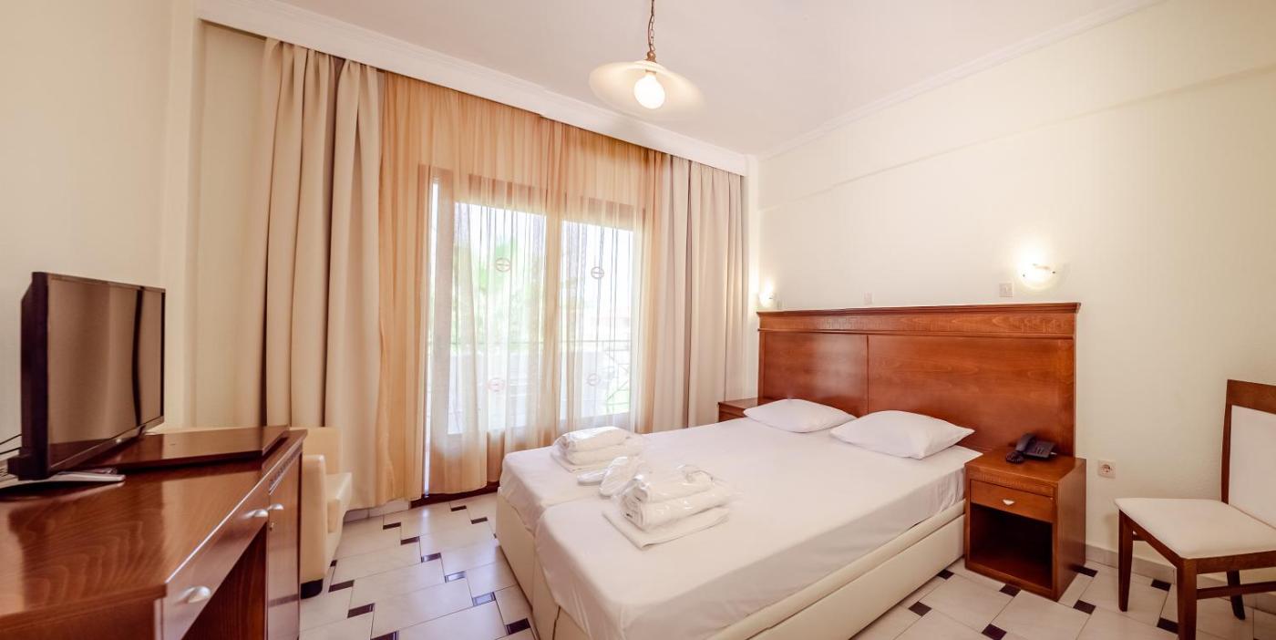 At the hotel, each room comes with a desk and a terrace with a garden view. Complete with a private bathroom equipped with a shower and a hairdryer, guest rooms at Tresor Sousouras have a flat-screen TV and air conditioning, and certain rooms include a balcony.guest rooms will provide guests with a fridge.