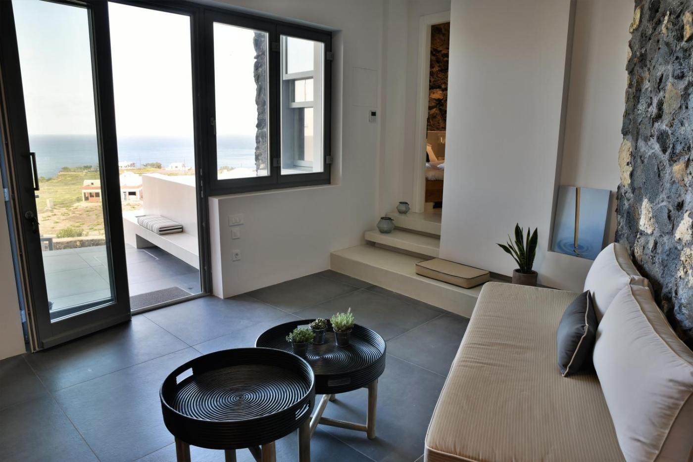 Deluxe Suite with Sea View with private plunge pool. This suites standout features are the infinity pool and hot tub. Boasting a private entrance, this air-conditioned suite includes 1 living room, 1 separate bedroom and 1 bathroom with a walk-in shower and a hairdryer. Meals can be prepared in the kitchen, which has a stovetop, a refrigerator, kitchenware and a microwave. Featuring a terrace with sea views, this suite also offers soundproof walls and a flat-screen TV with streaming services. The unit has 1 bed.