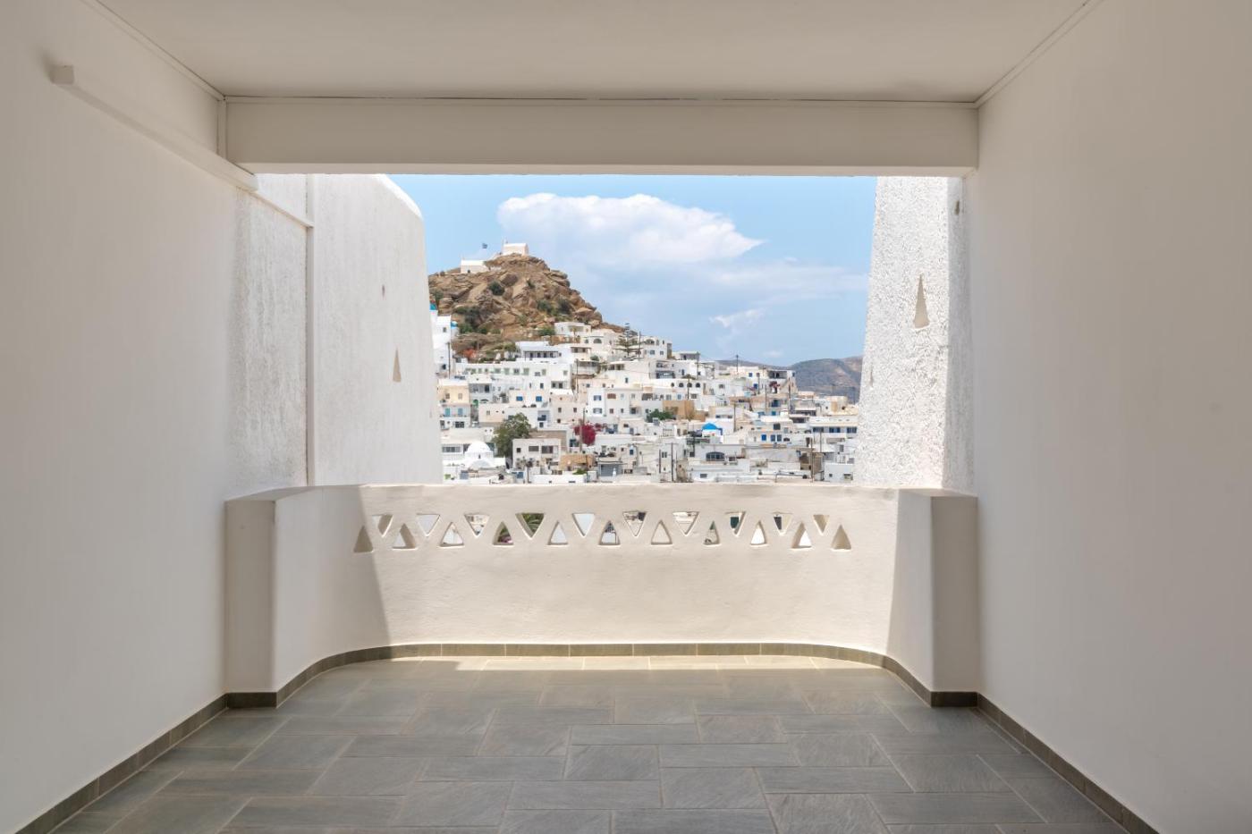 Triple Room. This air-conditioned room opens to a balcony overlooking Ios Town. It includes a fridge, a TV and a private bathroom with hairdryer and free toiletries. ;