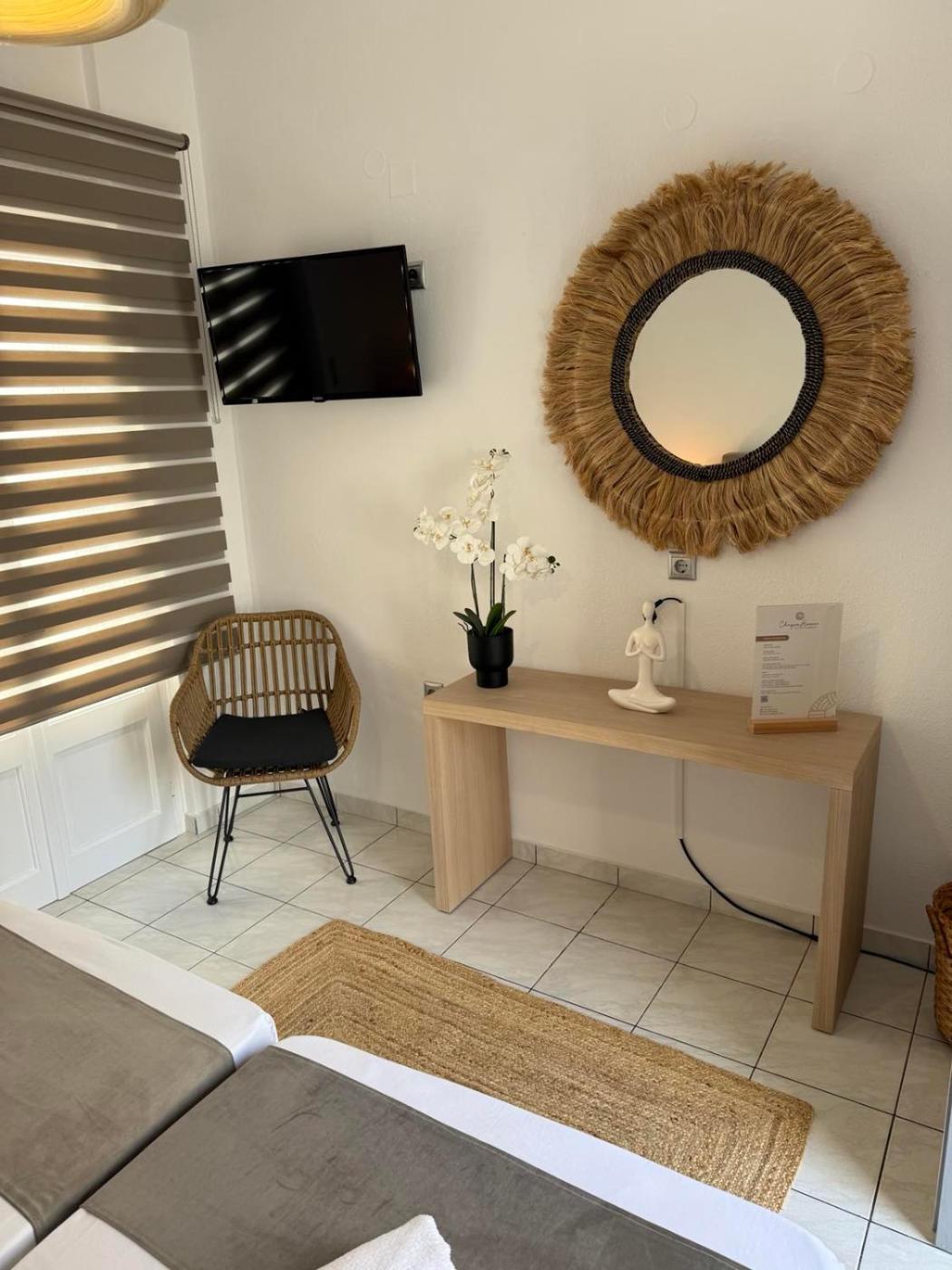 At the hotel, the rooms come with a wardrobe. Complete with a private bathroom fitted with a shower and a hairdryer,rooms at Chrysa House have a flat-screen TV and air conditioning, and selected rooms also feature a terrace.guest rooms will provide guests with a fridge.