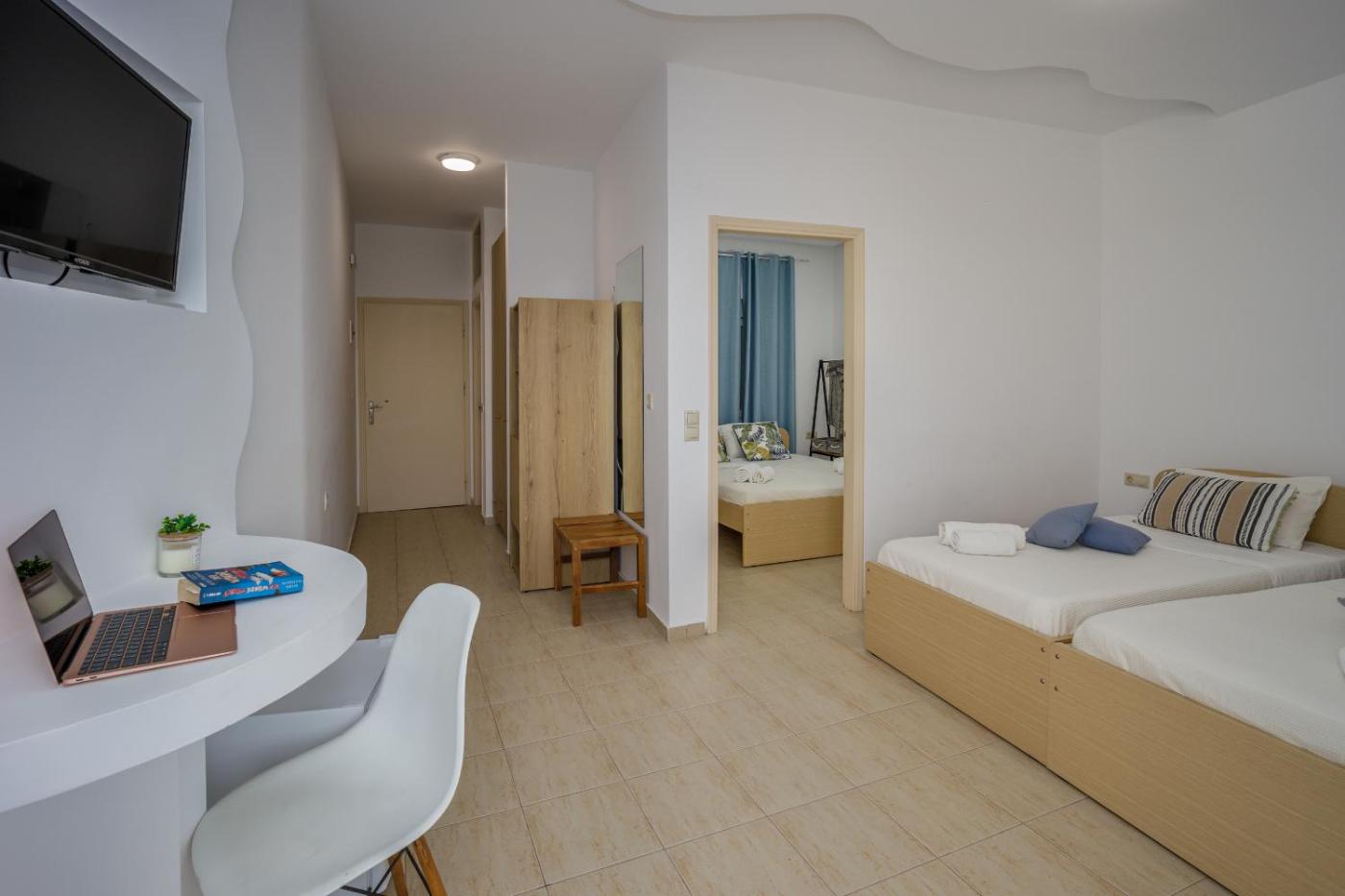 Seaside Gouves has a seasonal outdoor swimming pool, garden, a private beach area and shared lounge in Kato Gouves. Among the facilities of this property are a restaurant, room service and a 24-hour front desk, along with free WiFi throughout the property. Guests can make use of a bar.