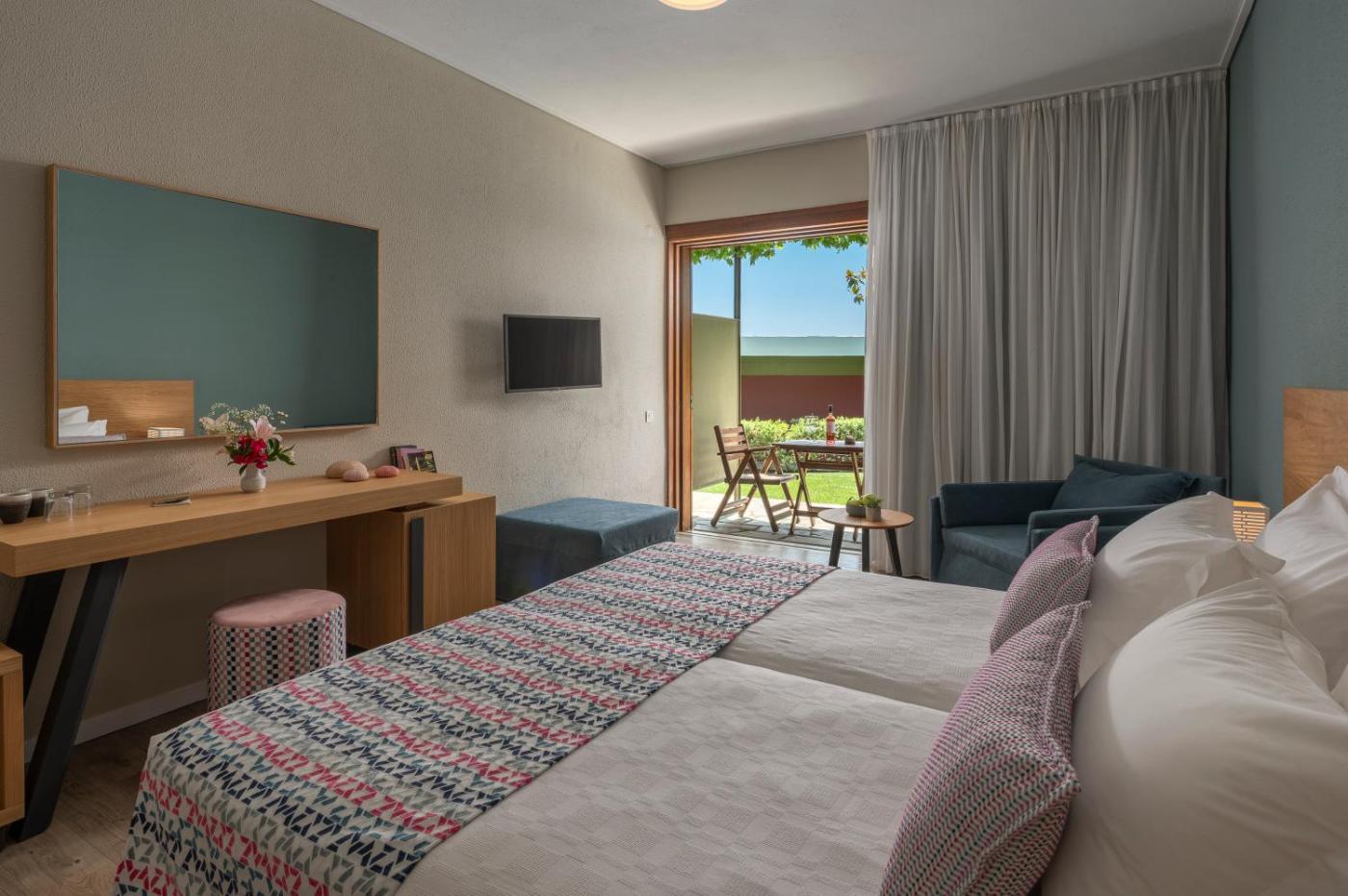 Standard Room with Garden View. The spacious twindouble room provides air conditioning, soundproof walls, a terrace with ancourtyard view as well as a private bathroom featuring a bath.