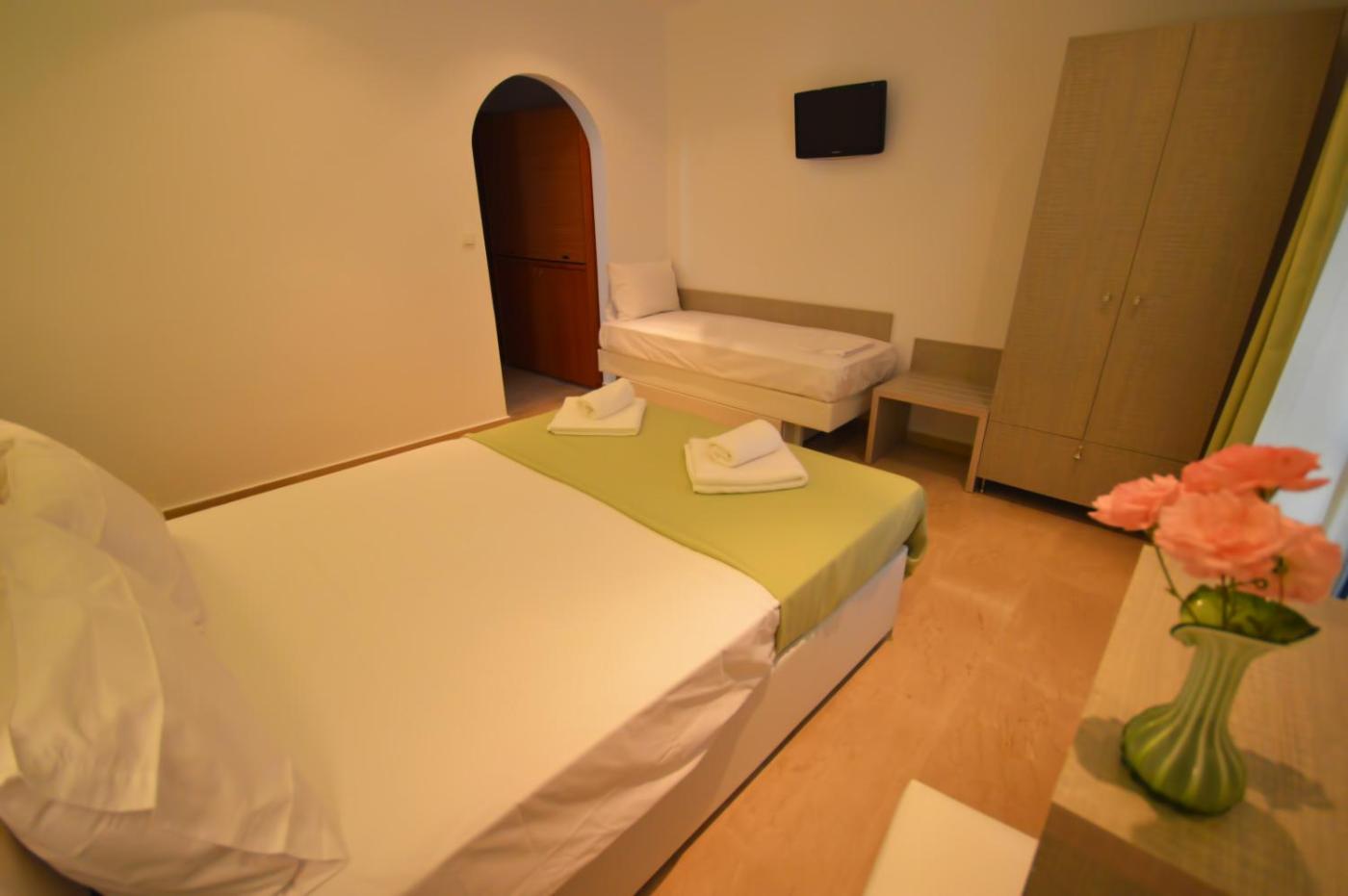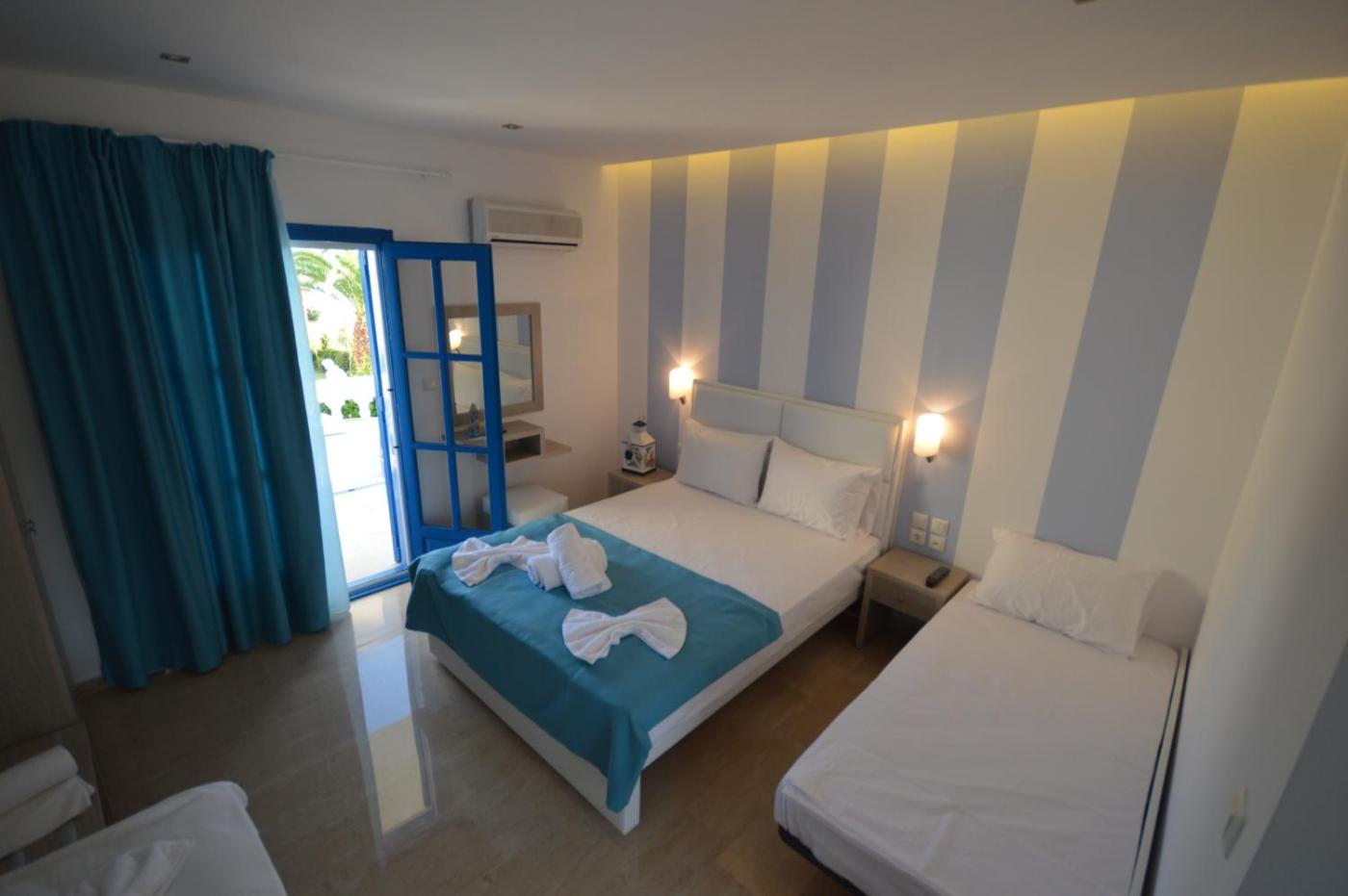 Studio with Sea View (2 Adults + 1 Child). 20 metres from the beach this air-conditioned studio has a furnished balcony overlooking the Aegean Sea or the garden. A kitchenette with cooking facilities and fridge is included. ;