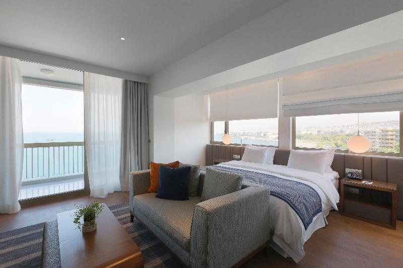 Deluxe Suite with Sea View. These luxurious one-bedroom suites feature wooden floors, luxurious textile and stylish decorative details. They have a separate living room area and a working desk. They feature a queen bed and sea view from their large balcony. Please note that this room type can accommodate up to 2 adults and 1 child. Please note that the child is accommodated at a roll-away bed. ;