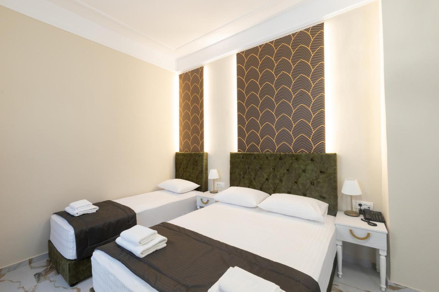 Deluxe Triple Room. Providing free toiletries, this triple room includes a private bathroom with a bath, a shower and a hairdryer. This triple room is air-conditioned and features a flat-screen TV with satellite channels, a private entrance, soundproof walls and a minibar. ;